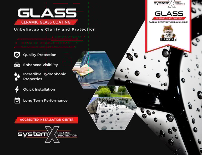ARE YOU TIRED OF THOSE HARD WATER SPOTS, BUG GUTS, AND OTHER CONTAMINATES INTERFERING WITH YOUR VISIBILITY? IF SO, WE HAVE A SOLUTION FOR YOU! [ELEMENT 119 : SYSTEM-X "GLASS KIT"] OFFERING BEST IN CLASS HYDROPHOBIC PERFORMANCE & PROTECTION. MOLECULAR BONDING TO THE SURFACE FOR A GLOSS LIKE FINISH AND CRYSTAL CLEAR VISIBILITY, LASTING UP TO 3 YEARS! BACKED BY THE BIGGEST NAMES IN THE INDUSTRY AND MANUFACTURED IN THE USA !